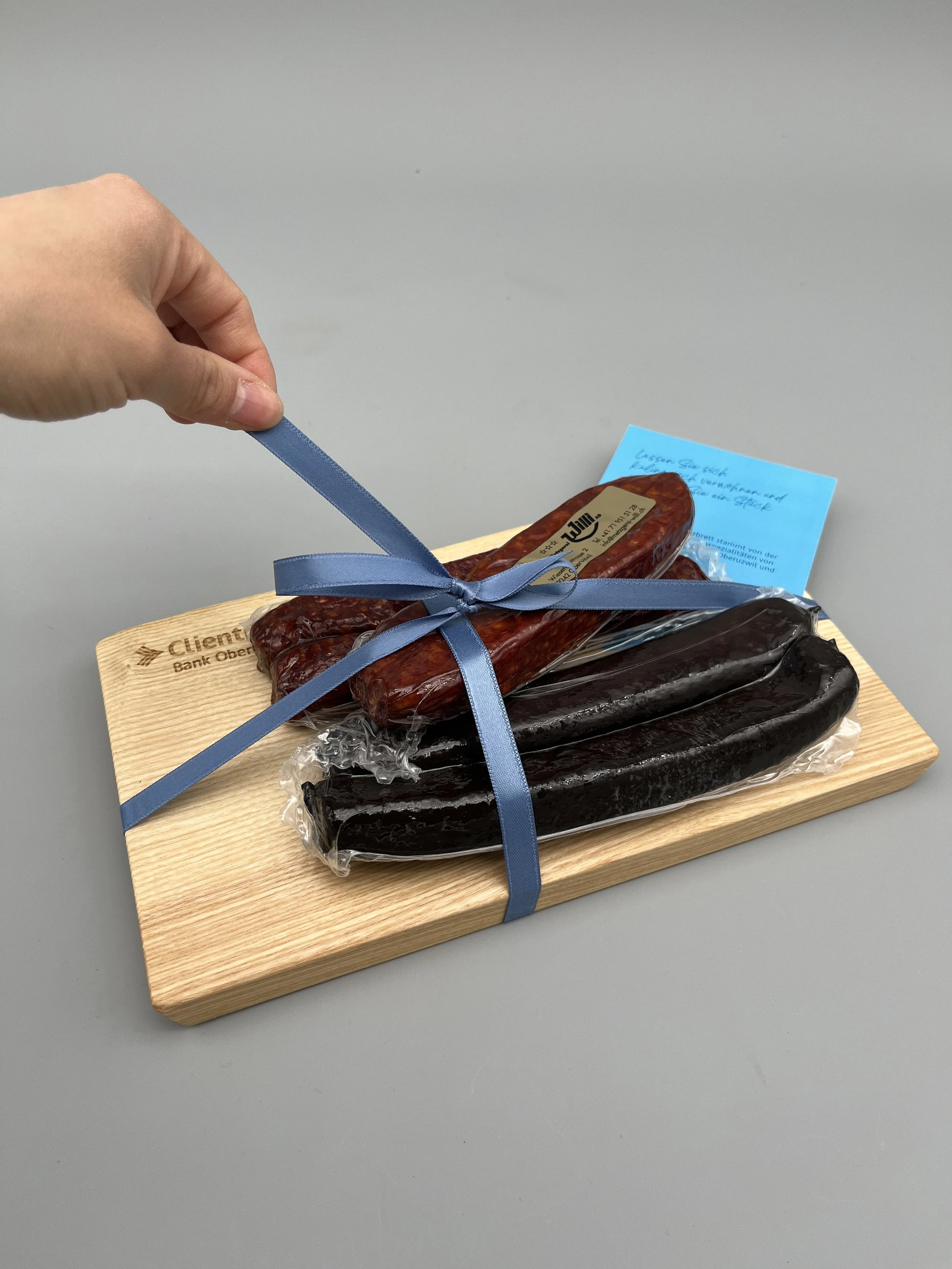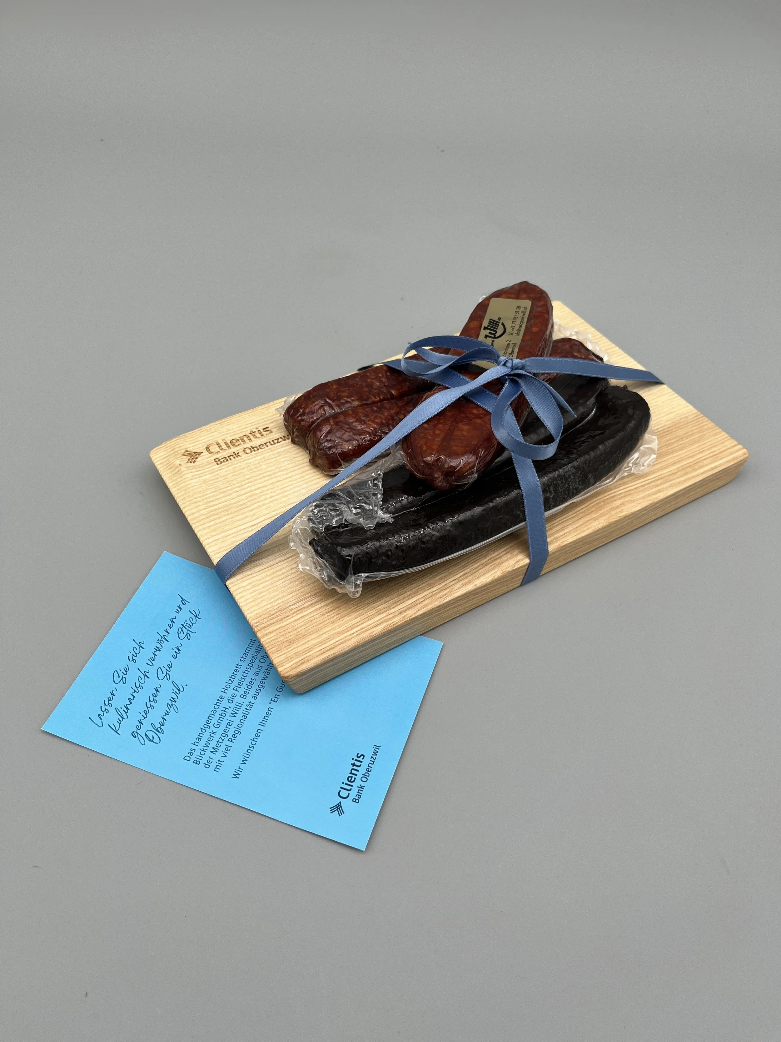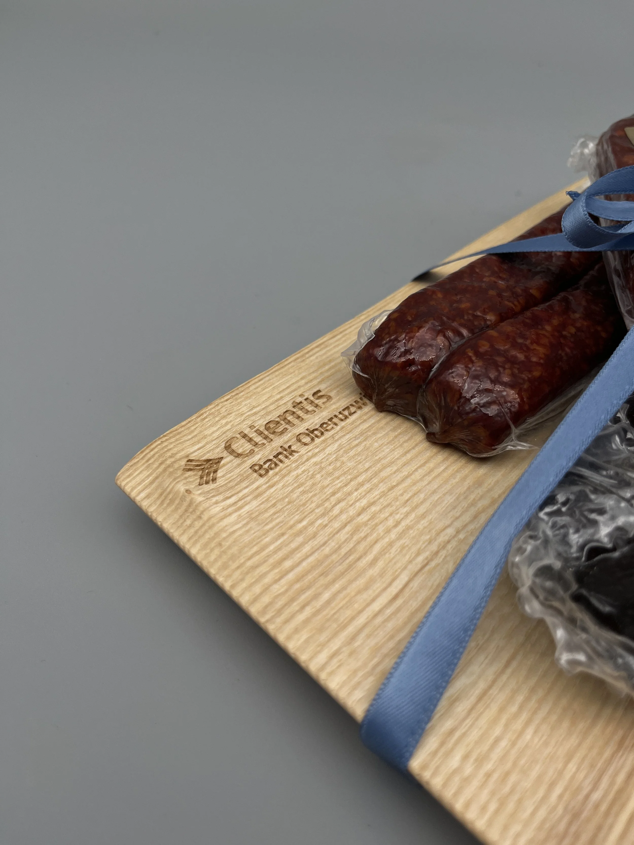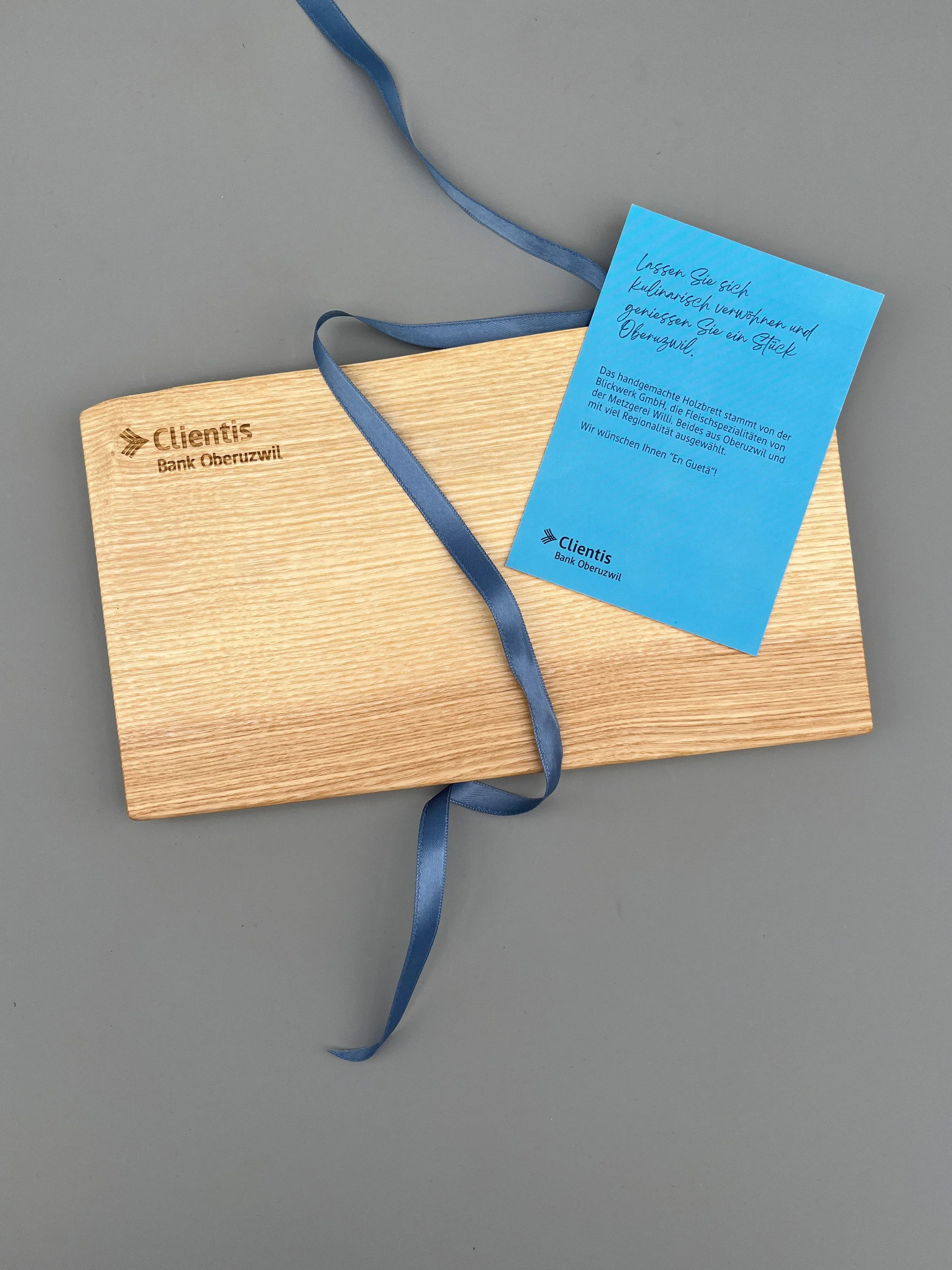 Personalisierte Massivholz Brettli für die Clientis Bank Oberuzwil